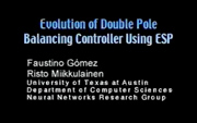 Generations 10 - 11 By generation 10, the networks show qualitative improvement. The poles are brought to vertical and some success is achieved in reducing the poles' angular velocity and damping oscillations. MP4 Movie File 0.17 Mb AVI Movie File 1.90 Mb |