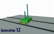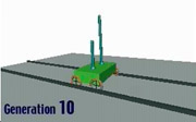Generations 1 - 9 In this first stage of evolution, the best networks can only balance the poles for at most 5 seconds. Initially, these networks are those that can delay failure by moving slowly in the direction of the falling poles. As the neurons begin to adapt, the network can at least swing the pole back to vertical. MP4 Movie File 0.22 Mb AVI Movie File 1.90 Mb |